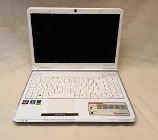 Ordenador portátil Packard Bell, color blanco, con pantalla de 15,6". Restaurado a valores de fábrica. Modelo: EasyNote TS44-HR-260SP Procesador: Intel Core i7 Gráfica: NVIDIA GeForce GT 540M, 2GB VRAM Memoria: 4GB DDR3 Disco duro: 750 GB HDD Windows 10 (actualizado desde Windows 7) En buen estado. Únicamente amarilleado el teclado, y funcionamiento algo lento (se podrían reemplazar fácilmente el disco duro y la RAM, e incluso sustituir el lector de DVDs por un segundo disco duro). Incluye cargador y guía de instalación originales, y discos de recuperación.