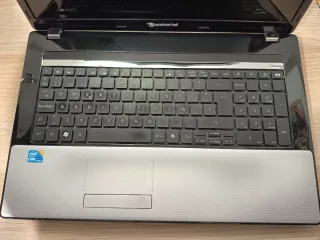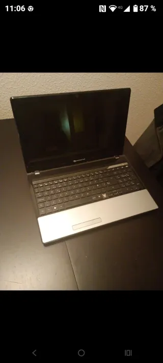 Ordenador portátil Packard Bell en color negro y plateado. Un equipo funcional para el día a día. - Pantalla de buen tamaño. - Teclado completo con panel numérico. Falla alguna letra con un teclado con usb se soluciona. - Trackpad integrado.