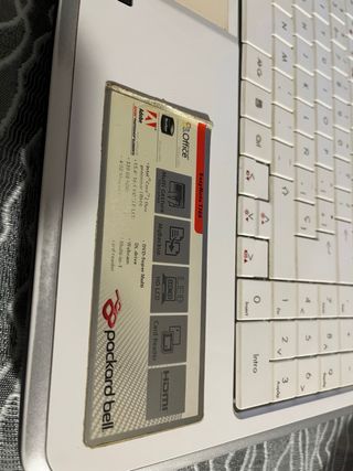 Portátil Packard Bell en color negro. - Diseño elegante y moderno. - Logotipo de la marca en la tapa. Windows 7 pro 32 bits sp1, y navegador actualizado para navegar por internet En las fotos podéis ver las características técnicas, ideal para coleccionistas. funciona muy bien. Cambiado pasta termica y limpieza a fondo del interior de portatil. dvd funcional.