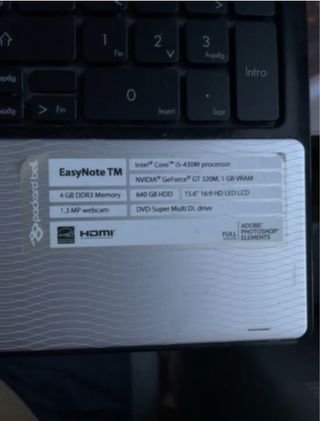 Portátil Packard Bell en color negro y gris. - Diseño elegante. - Acabado texturizado en la tapa. - Ideal para estudios, teletrabajo, multimedia, uso diario... - Intel Core I5-2410M - GPU NVIDA GT 520M (512MB VRAM) - 8GB de RAM - Nuevo - SSD SanDisk Ultra de 512GB - Nuevo - Bateria recien cambiada - Pantalla de 15,6 pulgadas - Windows 11 Home activado - Listo para usar - Funciona perfectamente y va rapido Las mejoras que se le han hecho han sido: cambiar el SDD, la RAM y la bateria PRECIO NEGOCIABLE