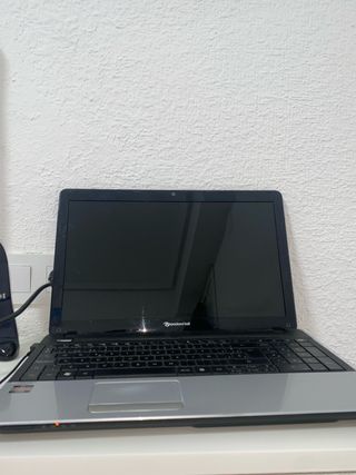 Ordenador Packard Bell en color negro y plateado. Incluye cables. No funciona si no esta cargando.