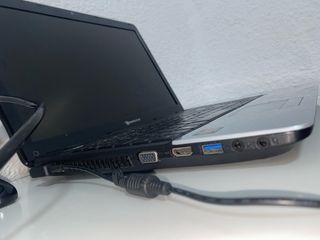 Portátil Packard Bell MS2288 con acabado en negro y detalles plateados. No tiene bateria, pero tiene el cargador y funciona perfectamente. Intel core i5 4gb de ram