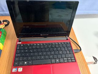 Mini ordenador portátil Packard Bell en color rojo. Compacto y fácil de transportar. - Pantalla de 10 pulgadas. - Teclado QWERTY español. - Touchpad integrado. - 160gb disco duro - 1gb de ram ddr2 - sin cargador Nota: Funciona, pero hay que reparar el sistema. Para piezas o reparación.