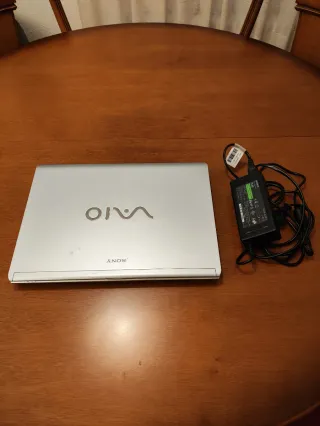 Portátil Sony Vaio VGN-SR29XN en color plateado. Procesador Intel corte duo, 4 GB de RAM, SSD de 120 GB. Windows 10 pro activado. Cargador original. Batería dura 1 hora 45 minutos aproximadamente. Funciona bien. Ideal para tareas diarias.