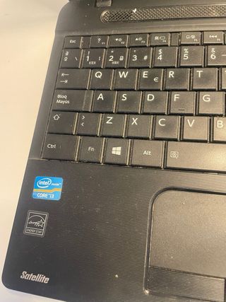 Portátil Toshiba en color negro, ideal para obtener componentes o para reparar. El portatil va muy bn se me rompio una pestalla donde va el disco duro y el arreglo vale 50e y paso de arrelarlo Disco duro vendido Tarjeta grafica vendido - Pantalla. - Teclado. - Carcasa. - Trackpad.