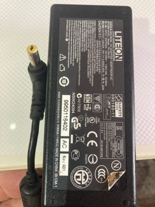 Cargador para ordenador portátil LiteOn. Salida 19V 6,32A. Compatible con Acer, HP, Compaq, Toshiba y más modelos del mercado. En perfecto estado de funcionamiento y en buen estado de conservación. NO se hacen envíos.