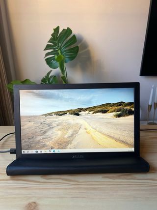 - Pantalla 15,6” Full HD con panel IPS. - Resolución 1920x1080. - Ligera (800g) y ultrafina (solo 0,85 cm). - Funciona mediante un único cable USB (incluido) sin necesidad de cargador externo. - Funda-soporte incluida para usarlo en horizontal o vertical. - Perfecta como segunda pantalla para portátil. Está como nuevo. - Ideal para trabajo, estudio o viajes: lo conectas y listo.