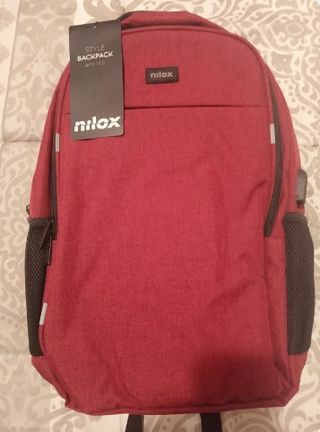 Mochila Nilox en color rojo oscuro, ideal para llevar tu portátil. Está nueva. - Diseño elegante y moderno. - Compartimento principal amplio. - Bolsillos laterales de malla. - Espalda acolchada para mayor comodidad.
