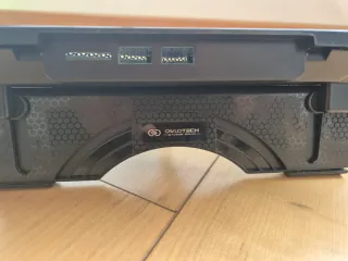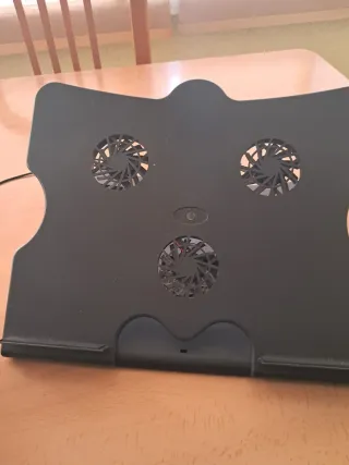 Base de refrigeración para portátil con dos ventiladores silenciosos integrados. Diseñada para mejorar la ventilación de tu equipo. - Superficie de malla metálica. - Diseño ergonómico. - Dos ventiladores de gran tamaño. ideal para trabajar o jugar sin que el portátil se caliente. Estructura robusta, rejilla metálica y soporte con inclinación ajustable para usarlo más cómodo. Funciona perfectamente. Estado: bueno, con marcas normales de uso. Perfecta para portátiles de 13” a 17”.