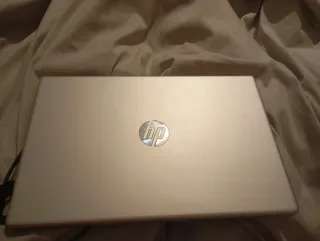 Portátil HP con un acabado elegante. - Diseño moderno y estilizado. - Logotipo de HP en la tapa.