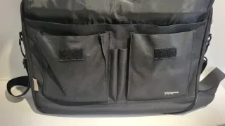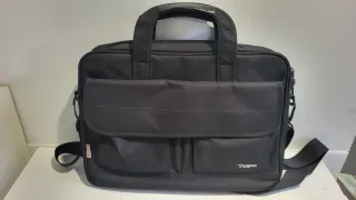 Maletín negro para ordenador portátil, diseñado para ofrecer protección y organización. Tiene multitud de bolsillos donde poder guardar desde documentos hasta bolígrafos. Esta en muy buen estado y es de una construcción resistente para impedir que los golpes no dañen el portatil, contando con protecciones de plastico en los bordes. - Compartimentos interiores. - Material resistente. - Cierre de cremallera.