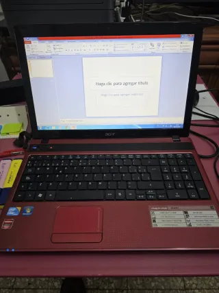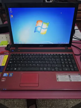 Portátil Acer Aspire 5742G en color rojo. Cuenta con una pantalla de 15.6 pulgadas. - Procesador Intel Core i3-380M. - Gráficos AMD Radeon HD 6370M. - 4 GB de memoria RAM DDR3. - Disco duro de 500 GB. - Unidad DVD-Super Multi. - Conectividad Wi-Fi 802.11b/g/n. - Batería de 6 celdas Li-ion. Incluye windons profesional office. No funciona sin el cargador bacteria muerta tiene que estar el portátil conectado a la corriente