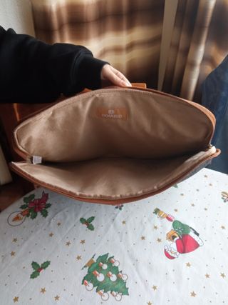 Mochila bandolera para ordenador portátil laptop. Marca Adolfo Domínguez. La bolsita que tiene para cargadores tiene la cremallera algo descosida. Tiene algunos años pero está poco utilizada porque apenas saco el portátil de casa.