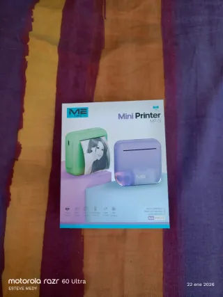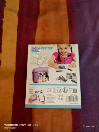 Impresora térmica portátil para imprimir fotos y notas. - Conexión Bluetooth. - Diseño compacto y ligero. - Incluye cable USB.