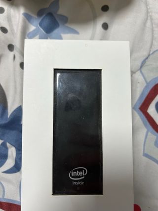 Dispositivo Intel Compute Stick. - Diseño compacto y portátil. - Logo de Intel visible.