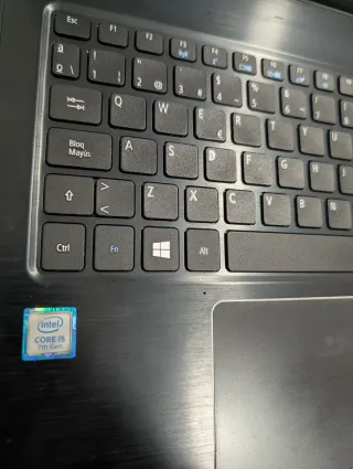 Portátil Acer con procesador Intel Core i5 de 7ª Generación. Su diseño combina acabados en negro y plateado. - Procesador: Intel Core i5 (7ª Gen) - Teclado QWERTY español - 500GB SSD, 16 GB DDR4, webcam, bluetooth, USB, entre tipo C, HDMI, SD, cargador original, pantalla 15'6. Batería 🔋 en buen estado
