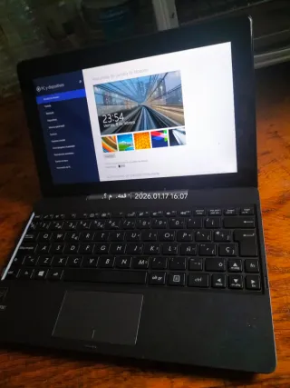 Dispositivo híbrido que funciona como portátil y tablet. Vendo ordenador ASUS en buen estado y funcionando correctamente. Tiene Windows 8.1 original y activado, procesador Intel Atom Z3775 a 1.46GHz y 2 GB de memoria RAM, ideal para navegación por internet, estudios y uso básico diario. Dispone de pantalla táctil con soporte para 10 puntos, funcionando perfectamente. El sistema es de 32 bits con procesador x64. Es un equipo ligero, práctico y listo para usar desde el primer momento. Se vende tal como se muestra en las imágenes.