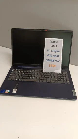 Portátil Lenovo con procesador Intel Core i7 de 11ª generación. Prácticamente nuevo. Poquísimo uso. - 8GB de memoria RAM. - Disco SSD de 500GB. - Modelo de 2023. - Precio: 379€. INCLUYE CARGADOR ORIGINAL