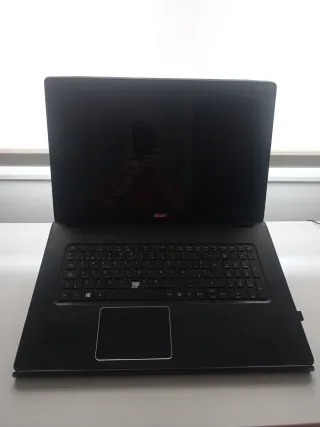 Ordenador portátil Acer Aspire con un diseño moderno en negro y rojo. - Pantalla de 15.6 pulgadas. - Teclado numérico integrado. - Touchpad amplio. -Cargador -Funciona perfectamente