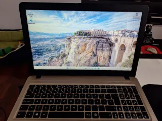 Portátil Asus de 15.6 pulgadas en funcionamiento, ideal para tareas básicas, ofimática o navegar por internet. Se nota lento al iniciar o abrir aplicaciones pesadas debido al uso. Nota importante: Algunas teclas del teclado (Enter, Alt, flechitas, Fn, teclado númerico y etc) no funcionan, por lo que se recomienda usar un teclado externo o teclado en pantalla para funciones específicas. Estéticamente conservado.