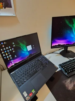 Vendo mi portátil Lenovo Legion 5. Está en muy buen estado, apenas tiene marcas de uso. - Modelo: Legion 5 - Color: Azul - Rtx 3060 - Disco duro de 250GB + Disco duro externo de 2T -16GB de ram ampliable a 32 Se entrega en su caja y cargador original más un maletín de transporte. Mantenimiento reciente, cambio de pasta térmica y limpieza de ventiladores, Muy bien cuidado, sin golpes. Se vende por falta de uso. IMPORTANTE- Nose bien bien que le pasa,Cuando estás jugando sin el cargador enchufado tienes la reducción de fps pero va bien..cuando le enchufas el cargador crashea en cualquier juego.. Precio negociable.
