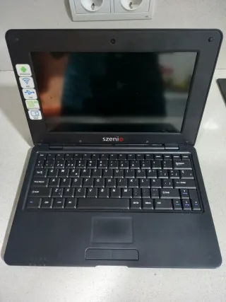Mini portátil de la marca Szeni en color negro. - Pantalla de 10 pulgadas. - Teclado QWERTY. - Incluye touchpad.