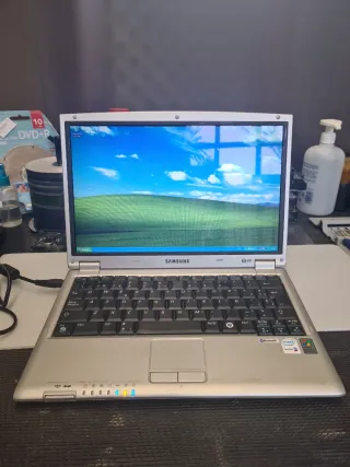 Ordenador portátil Samsung Q40 en color coral. - Pantalla de 14 pulgadas. - Teclado completo. - Panel táctil. - Indicadores LED de estado. - Win XP actualizado - Múltiples programas.