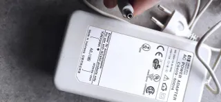 Adaptador de corriente AC de HP. Funciona perfectamente. - Modelo: C6409-60014 - Entrada: 100-240V~1A 50/60Hz - Salida: +18V 1.1A - clavija hueca 2.1mm - Cable de alimentación tipo 8
