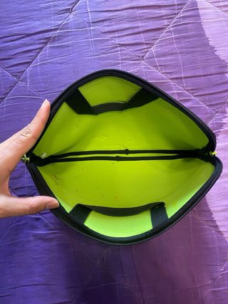 Funda protectora para ordenador portátil. - Color negro. - Cierre de cremallera. - Asa lateral de color verde neón.