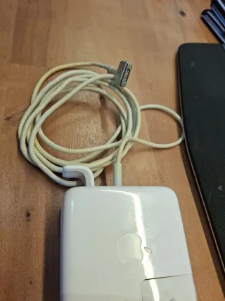 Adaptador de corriente blanco para portátil. - Diseño compacto y portátil. - Logo de Apple grabado en relieve.