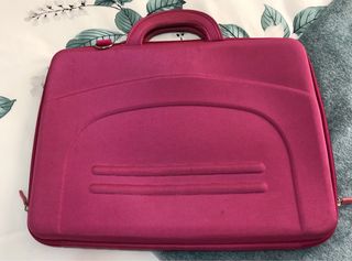Funda acolchada para portátil en color rosa vibrante. Diseñada para proteger tu dispositivo con estilo. - Material exterior satinado. - Asa superior reforzada. - Cierre con cremallera. - Dos tiras decorativas en relieve en la parte frontal.