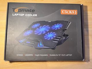 Base refrigeradora para portátil con diseño moderno y luces LED azules. - 5 ventiladores. - 2400 RPM. - Altura ajustable. - Adecuado para portátiles de 10 a 15.6. Precio negociable.