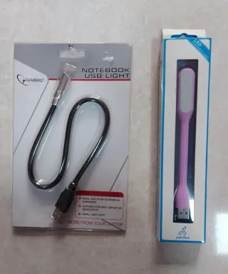 Pack de dos luces LED para portátil. Una es de la marca Gembird y la otra es una luz LED portátil de la marca Pacífico. - Luz Gembird ideal para trabajar en la oscuridad. - Luz Gembird adecuada para cualquier portátil o PC de escritorio. - Ambas luces son pequeñas y ligeras.