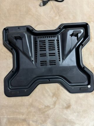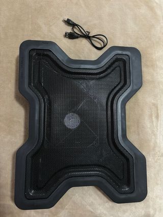 Base refrigeradora para portátil, en buen estado. Es portátil y cómoda de usar. Con patas y almohadilla. - Dispone de ventilador para refrigerar el portátil. - Diseño ligero y compacto. - Fácil de transportar. - Con patas. - Con almohadilla