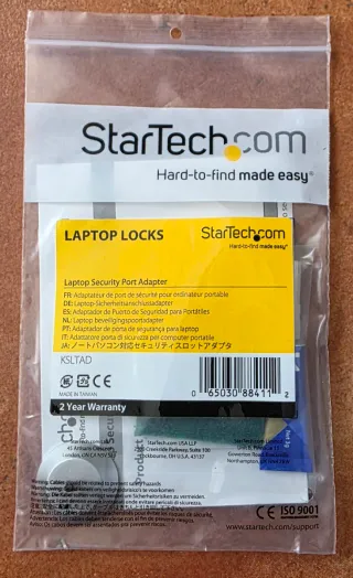 Adaptador de puerto de seguridad StarTech para portátiles sin ranura Kensington. Permite usar candados de seguridad estándar. Nuevos, sin usar. Se venden juntos. LOTE 4 UNIDADES: 35€