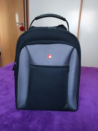 Mochila de diseño moderno, ideal para transportar tu portátil y todos sus complementos de forma segura y cómoda. Cuenta con un compartimento principal acolchado y varios bolsillos para organización. Refuerzo acolchado tmb en la espalda y en las tiras ajustable. - Color negro y gris. - Logo de la marca en la parte frontal.