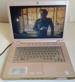 Portatil Sony PCG-5J5M 14.1 pulgadas.. Windows 7 home premium. Procesador Intel core 2 duo T7250 2...00 GHZ. Disco duro 160 gb sata, 2 gb memoria ram. Tiene lector de dvd. Cargador incluido. Nota: la bateria esta muerta no funciona, tiene que estar enchufado siempre.