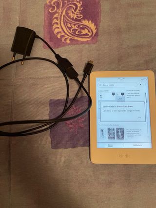 Libro electrónico Amazon Kindle en color blanco. Incluye su cargador. - Pantalla de tinta electrónica. - Diseño ligero y portátil. - Ideal para llevar tus libros a todas partes. No incluyo el enchufe, pero sí el cable original. El enchufe no venía con el ebook. No sé cuántos años tiene exactamente, pero más de 2 seguro. Lo usé tan solo para leer un par de libros e iba perfectamente.