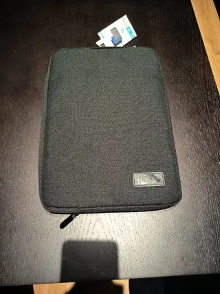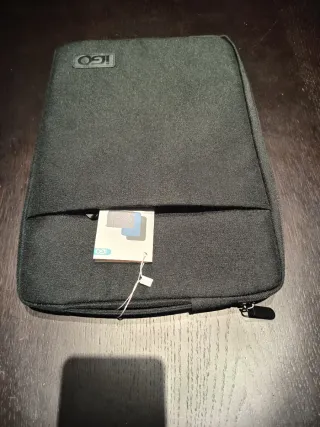 Funda protectora de color negro para portátil. - Material suave al tacto. - Cierre de cremallera. - Diseño elegante.