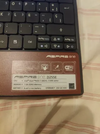 Portátil Acer Aspire D255E de 10.1 pulgadas. Compacto y ligero, ideal para tareas diarias. - Pantalla de 10.1 pulgadas. - Disco duro de 250 GB. - 2 GB de memoria RAM. - Procesador Intel Atom. .la batería está muerta abra q cambiarlo pero enchufado da ala perfecto