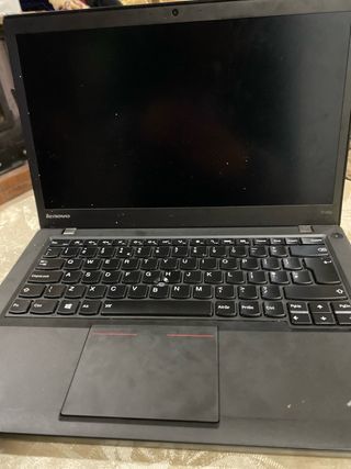 Ordenador portátil Lenovo con acabado en color negro. - Diseño elegante y profesional. - Logotipo de Lenovo en la carcasa. - Etiqueta ThinkPad distintiva. - Con cargador.