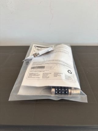Candado de combinación ClickSafe de Kensington para portátil. Incluye instrucciones y llave de seguridad. - Mecanismo de combinación de 4 dígitos. - Cable de acero resistente. - Incluye manual de usuario.