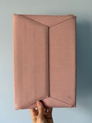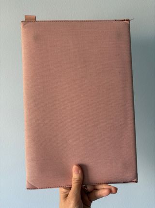 Funda protectora para MacBook Air de 13 pulgadas, modelo 2018. Su diseño es elegante y minimalista. - Material textil resistente. - Color rosa pálido. - Cierre con iman