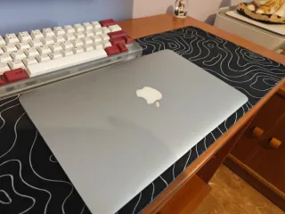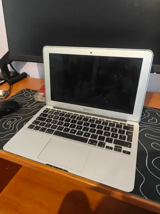 Portátil MacBook Air de Apple, modelo de 2013. Macbook funciona perfectamente sin ningún problema. La única pega es la batería que dura unas dos horas. Dependiendo del uso macOS Big Sur Versión 11.7.11 MacBook Air (13 pulgadas, mediados de 2013) Procesador 1,5 Gliz Intel Core i5 de doble núcleo Memoria 4 GB 1600 MHz DDR3 Disco de arranque Macintosh HD 128GB Gráficos Intel HD Graphics 5000 1536 MB La batería para reparar, pero aún así dura unas dos horas mas o menos Cargador, no incluido si quieres el cargador 20v 4,25-85W 30€ más, aunque nuevo vale 60€ - Color gris espacial y plateado. - Diseño delgado y ligero.