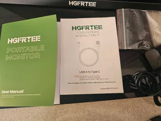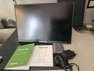 Monitor portátil HGFRTEE en color negro. Incluye manual de usuario y cableado, 16 pulgadas - Monitor portátil HGFRTEE. - Incluye manual de usuario. - Incluye cable USB A a Type C. - Incluye adaptador de corriente.