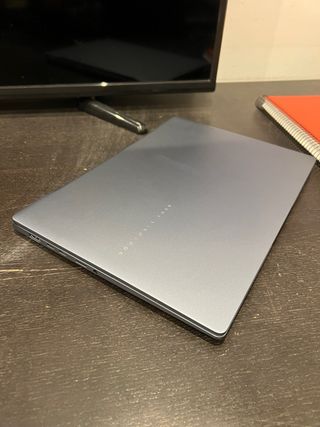 Portátil Lenovo ThinkBook en acabado plateado. - Diseño elegante y moderno. - Logo de ThinkBook en la parte inferior derecha.