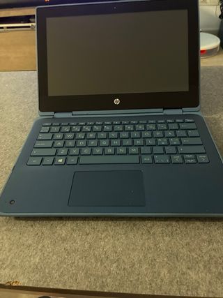 Portátil HP con pantalla táctil y acabado en azul y gris. - Capacidad de almacenamiento de 128 GB. - Memoria RAM de 4 GB.