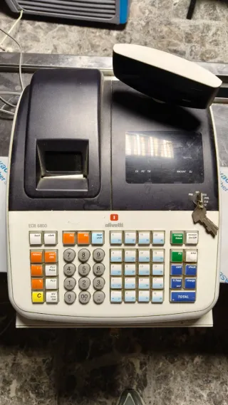 Caja registradora Olivetti ECR 6800LD. - Teclado numérico. - Pantalla LCD. - Bandeja para rollos de papel.