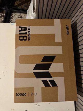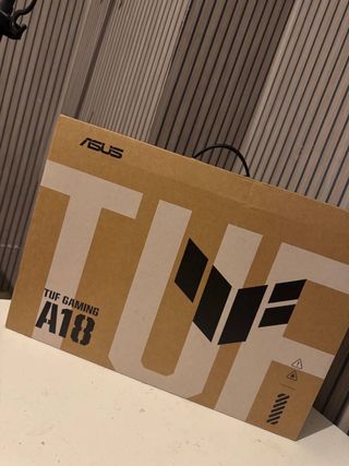 PC Gaming ASUS TUF A18 con un diseño moderno y robusto. - Modelo TUF Gaming A18. - Logo ASUS en la parte superior. - Empaque de cartón resistente.