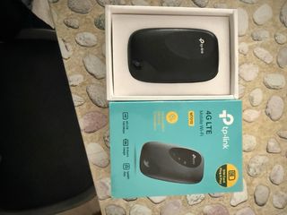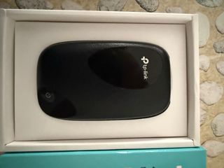 Router portátil para conexión Wifi. - Diseño compacto y elegante en color negro. - Botón de encendido/apagado. - Logo de la marca visible.